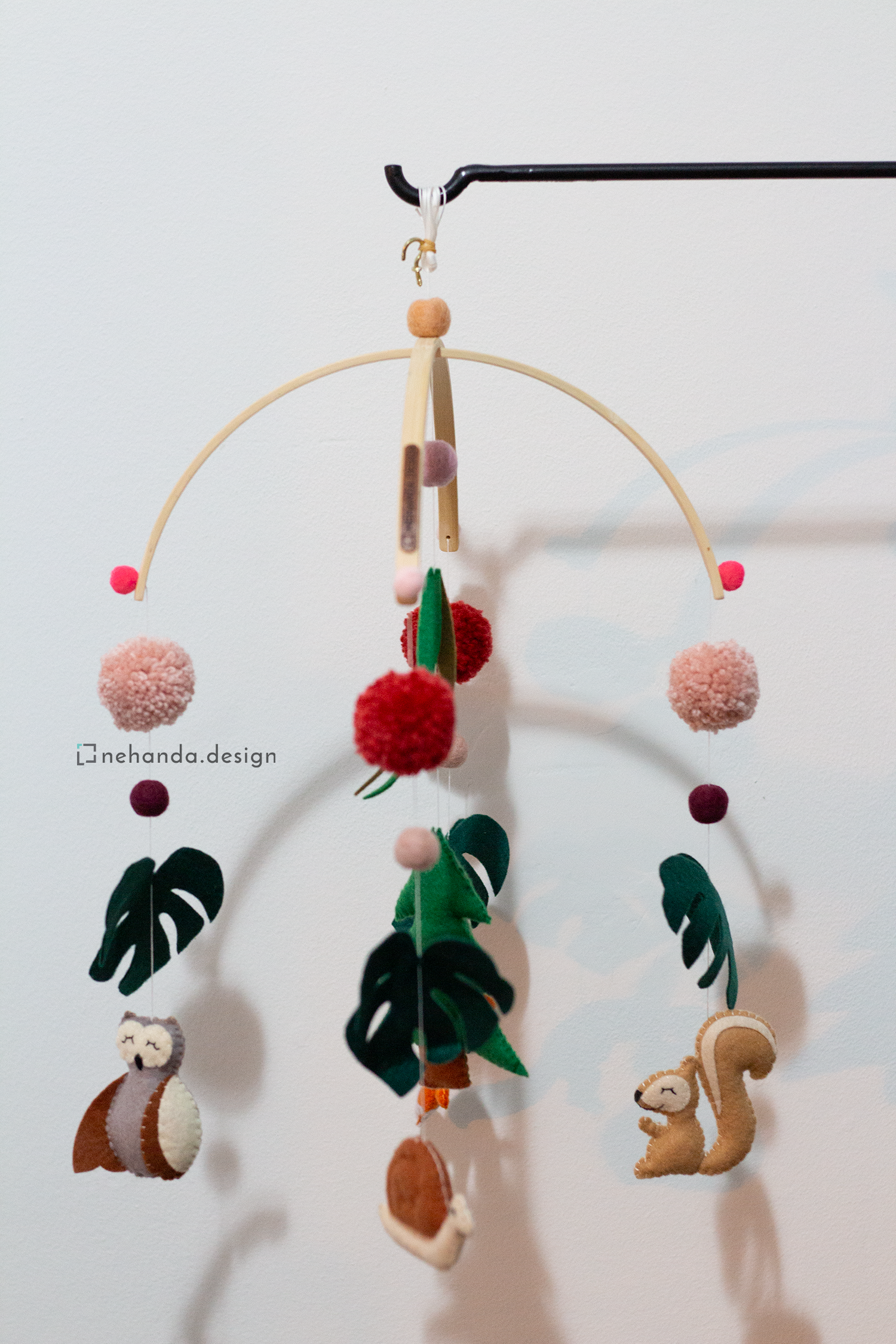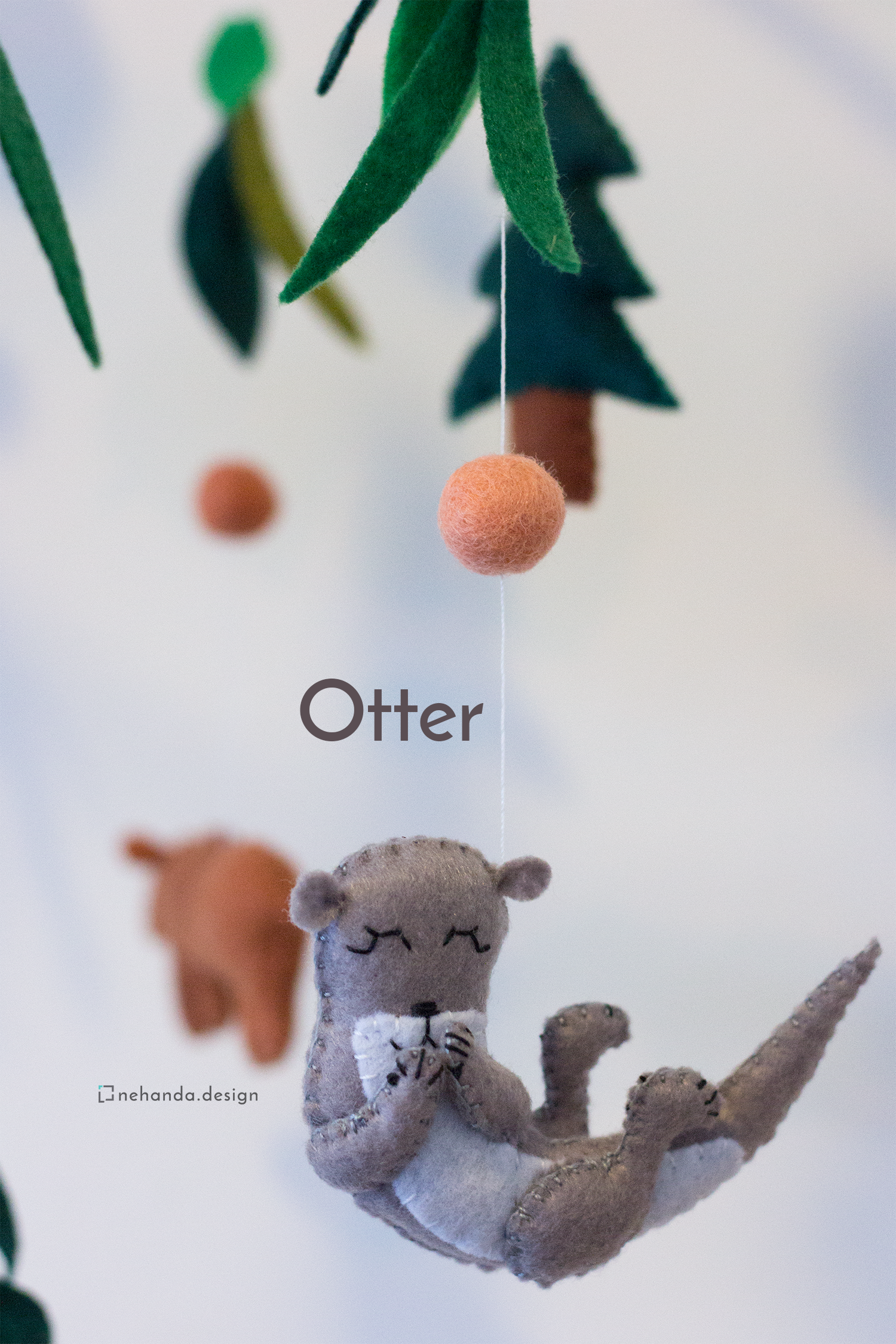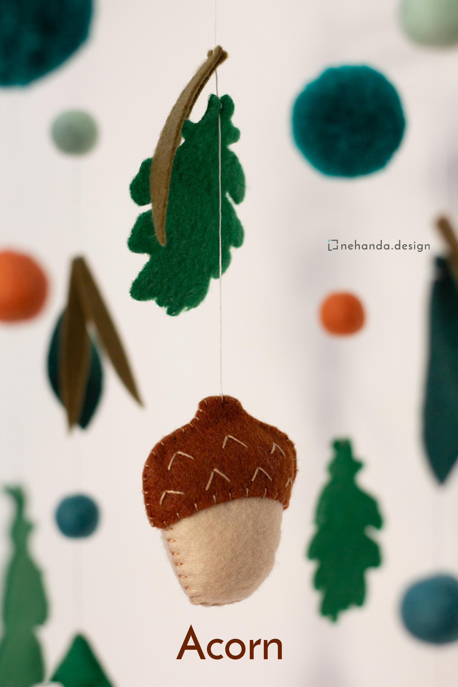 Inspired by the peaceful beauty of the woodlands, the Forest Life V1 Nursery Mobile adds a gentle, nature-filled atmosphere to your baby's space. At its center, a pine tree is surrounded by your choice of handcrafted forest creatures—such as owls, foxes, squirrels, or snails—along with pom-poms, foliage, and soft felt balls to complete the woodland scene.